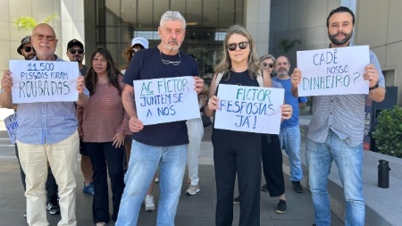 Investidores fazem ato na frente da Fictor, alvo da Polícia Federal: 'Cadê o capital?'