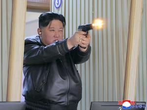 Kim Jong-un testa pistolas em visita a fábrica de munição na Coreia do Norte